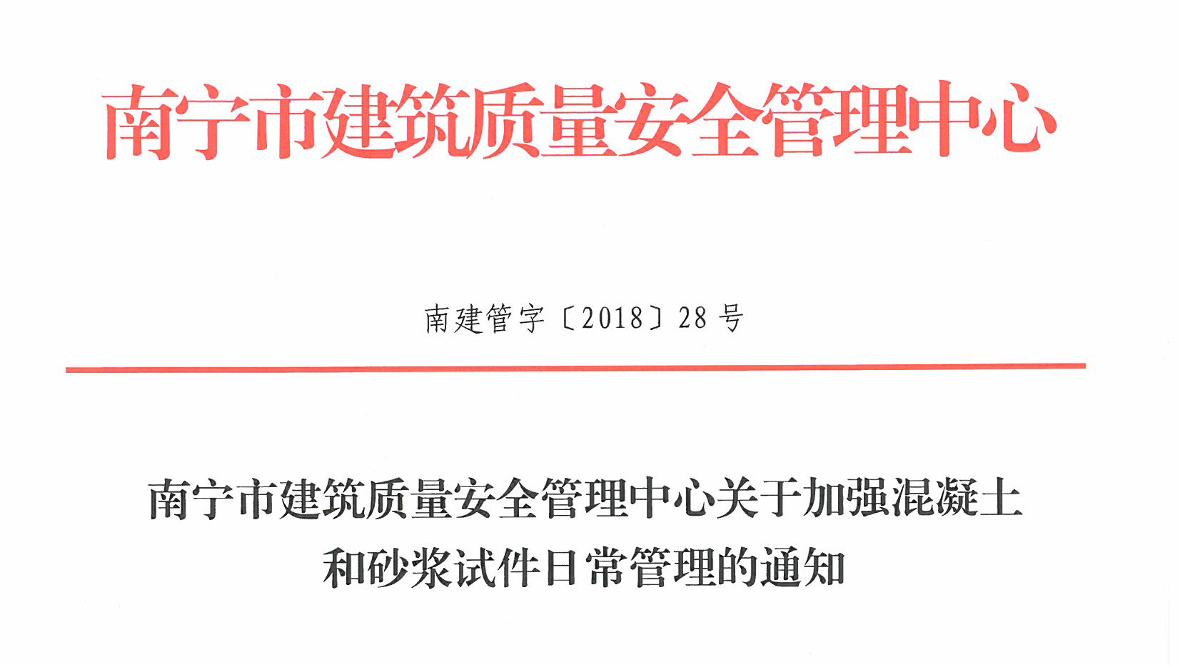 南寧市建筑質(zhì)量安全管理中心關(guān)于加強混凝土和砂漿試件日常管理的通知